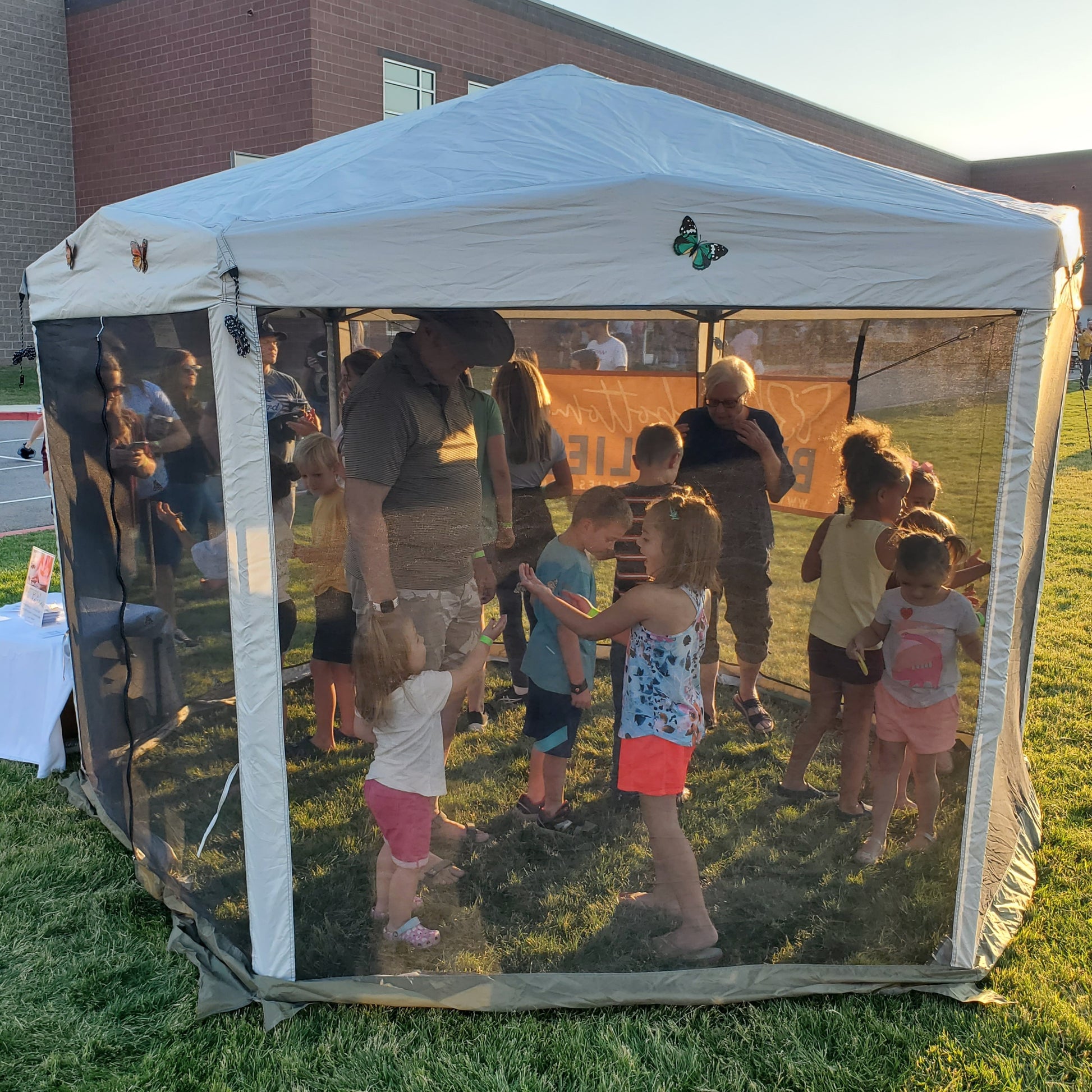 This is available indoors or outdoors any time of year in the areas between Ogden and Provo. We recommend this takes place outdoors (your backyard is just fine) if weather permits, but it can be great indoors as well. You can reserve your party house with a $100 deposit with the rest due on arrival, or you may pay in full online. This is 100% refundable up to 5 days before the event. No refunds are given for inclement weather but we can reschedule the event for free. You can fit 50-60 people per hour in groups of about 10 (rotating every 10-15 minutes. You can take and post as many pictures as you like! The entire package includes the butterfly house rental for 48 hours and 50 butterflies. We've designed it so that it's very low maintenance/low worry for you as the parent or organizer. Best of all, it brings all the butterflies to YOU!