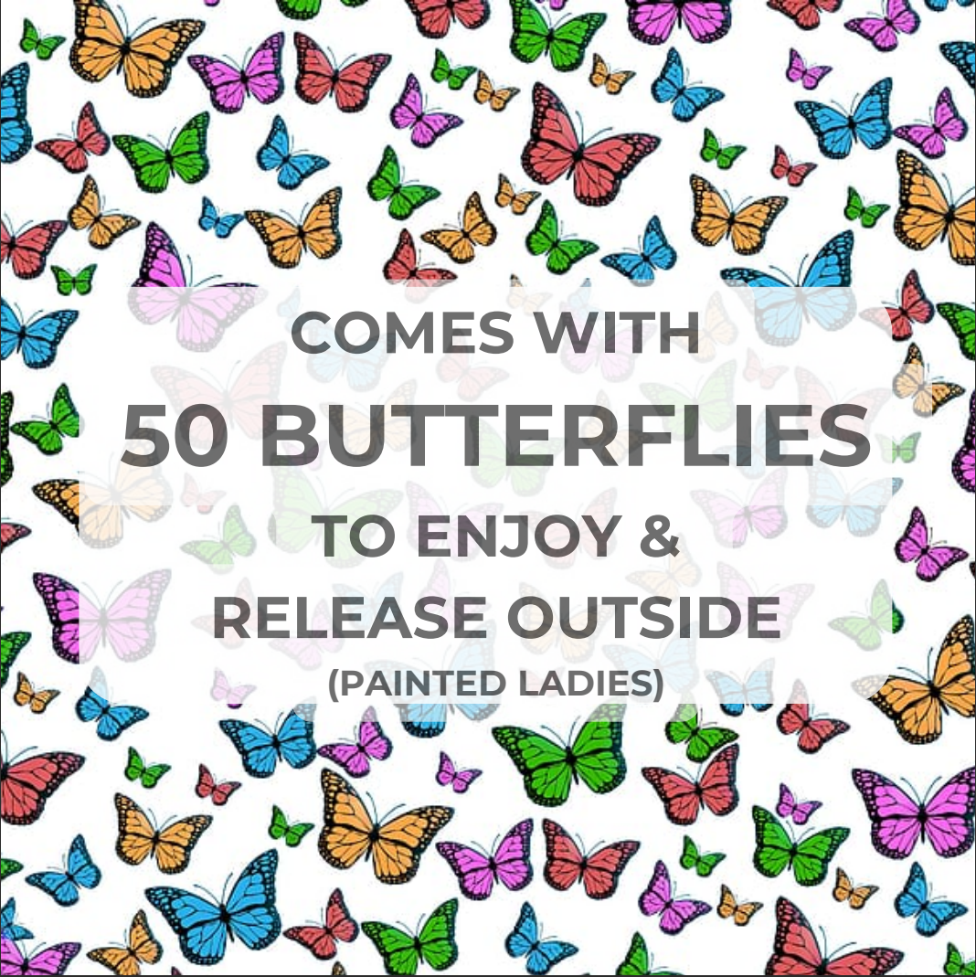 This is a 10' X 10' screened house filled with 50+ butterflies to bring an unforgettable butterfly experience to you! Easy set up allows everyone to observe and enjoy the butterflies up close and flying all around you! The experience ends with your own personal butterfly outdoor release!